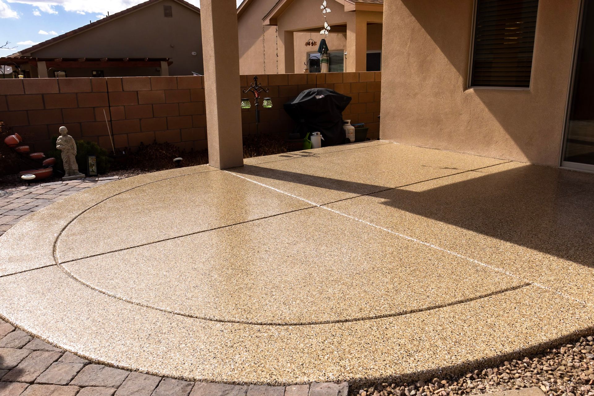 Our concrete patio floor coatings can help any homeowner create a stunning outdoor area, add curb appeal, and invest in the value of your home. Resurfacing your patio, porch or walkway is not only a quick and cost-efficient way to add style to any outdoor space, but also to protect it from the elements. Our expertly formulated polyurea patio coatings penetrate and seal the pores of your concrete, and our coatings are installed and cure perfectly within 24 hours regardless of the season.